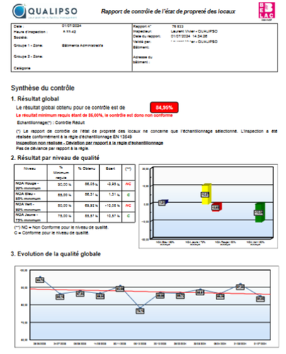 Les rapports de contrôles générés par l'application FLASH 2.0 offrent une vue d'ensemble détaillée et approfondie de la qualité du nettoyage.