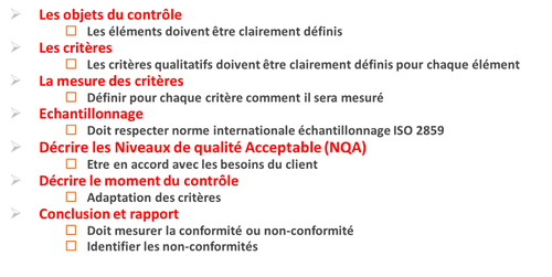 • accrédités : ils respectent strictement la norme ISO 2859 en termes d'échantillonnage ET sont accompagnés d'une "revue de contrat" signée par le client et à adapter à chaque changement.